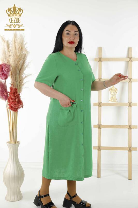 فروش عمده لباس زنانه دکمه ای سبز جیبی - 20383 | KAZEE