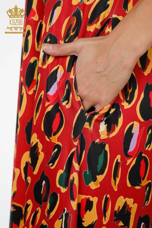 عمده فروشی لباس زنانه رنگارنگ طرح پلنگی شانه با جزئیات قرمز - 77794 | KAZEE