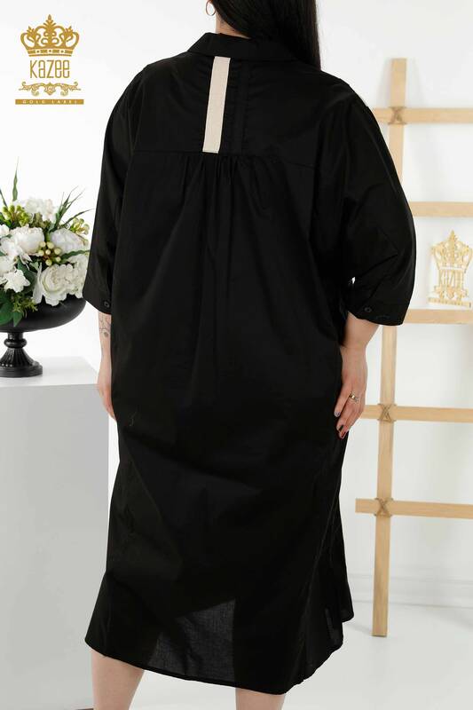 عمده فروشی لباس زنانه راه راه رنگی جیبی نیمه دکمه مشکی مشکی - 20380 | KAZEE