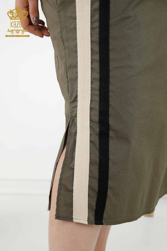 فروش عمده لباس زنانه راه راه رنگی جیبی نیمه دکمه ای خاکی - 20380 | KAZEE
