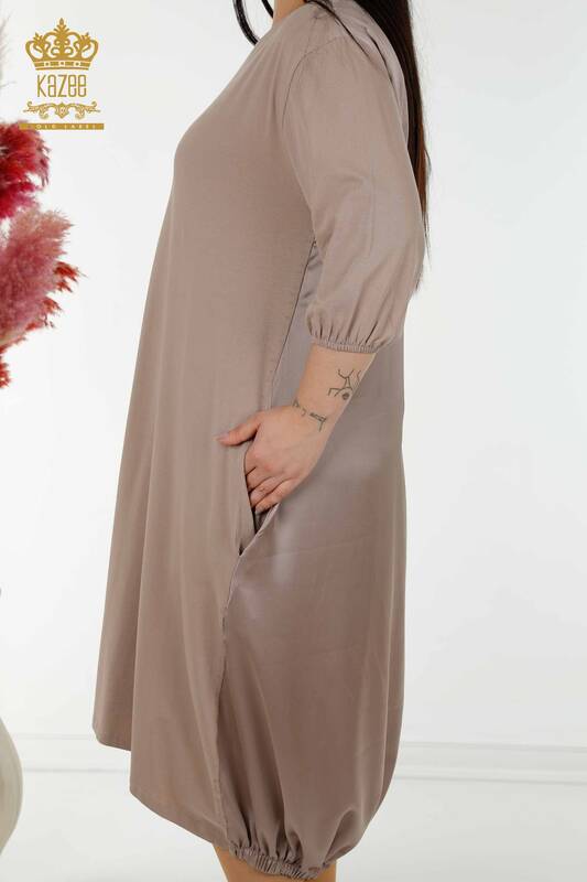 فروش عمده لباس زنانه با پارچه سنگ دوزی شده سنگ دوزی شده به رنگ بژ - 20331 | KAZEE