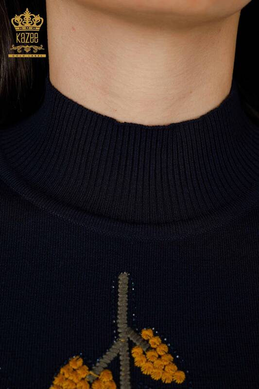عمده فروشی لباس بافتنی زنانه مدل امریکایی با گلدوزی سنگی سرمه ای - 16753 | کازی