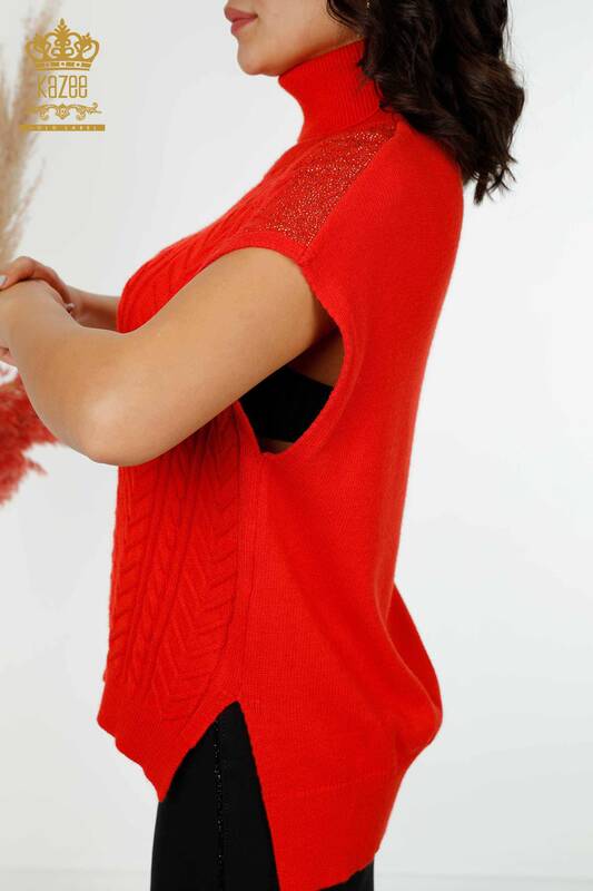 عمده فروشی لباس بافتنی زنانه سنگ کریستال شانه دوزی مرجانی -30097 / کازی