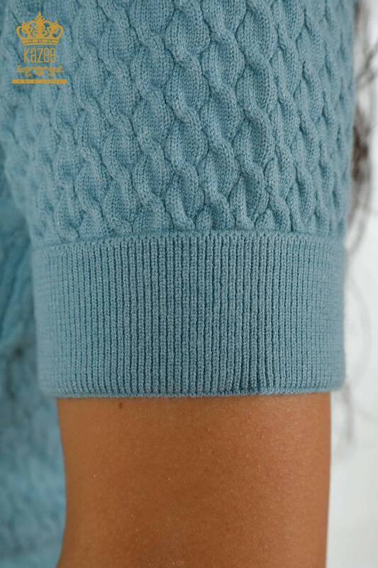 فروش عمده ژاکت بافتنی زنانه مدل آمریکایی پایه لوگو آبی - 30119 | KAZEE