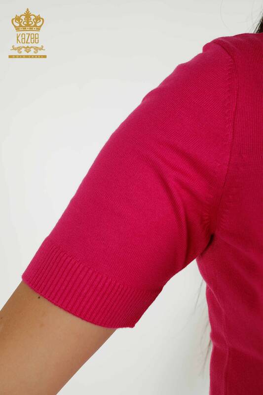 فروش عمده ژاکت بافتنی زنانه مدل آمریکایی لوگوی پایه فوشیا - 30255 | KAZEE