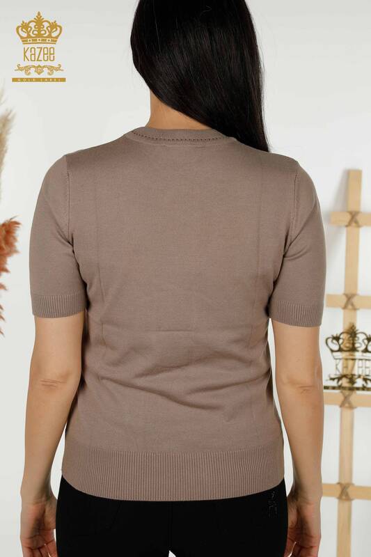 فروش عمده ژاکت بافتنی زنانه مدل آمریکایی Basic Logo Mink - 30255 | KAZEE