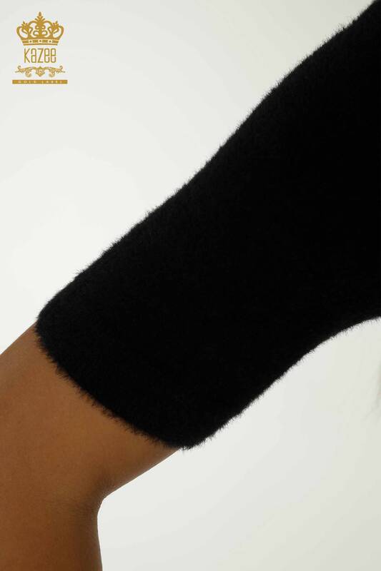 فروش عمده ژاکت بافتنی زنانه Angora Basic یقه بلند مشکی - 30610 | KAZEE
