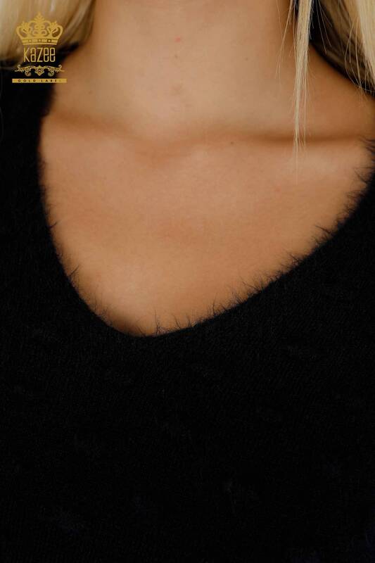 فروش عمده ژاکت بافتنی زنانه آنگورا طرح دار یقه خدمه آبی تیره - 18474 | KAZEE