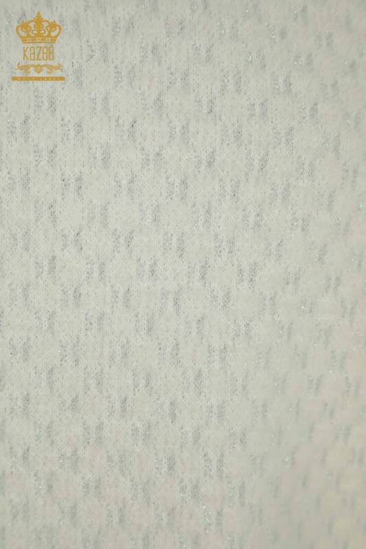 عمده فروشی ژاکت بافتنی زنانه آنگورا با جزئیات اکرو انتقال زرق و برق - 30446 | KAZEE