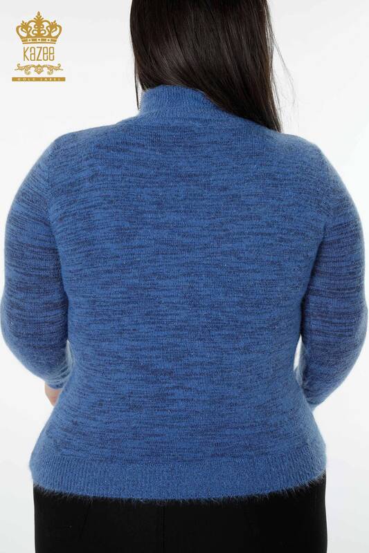عمده فروشی لباس بافتنی زنانه ژاکت گربه ای طرح دار یقه ایستاده براق انتقال آنگورا آبی - 19071 | KAZEE