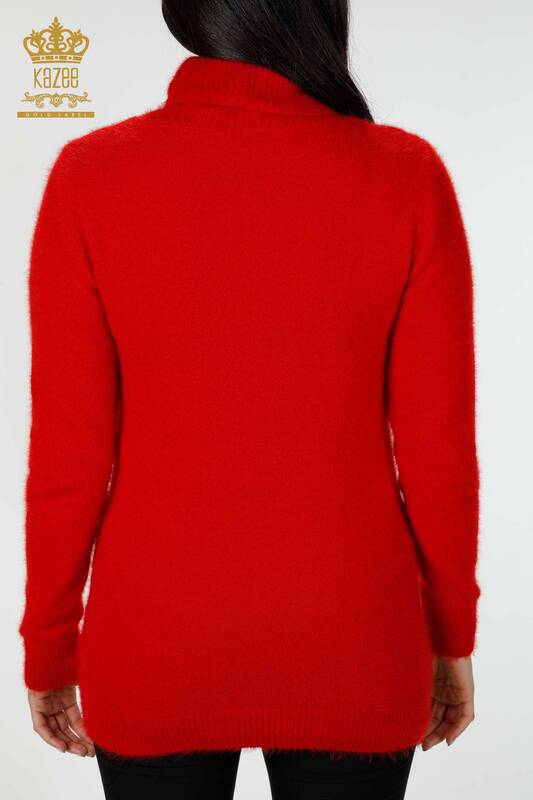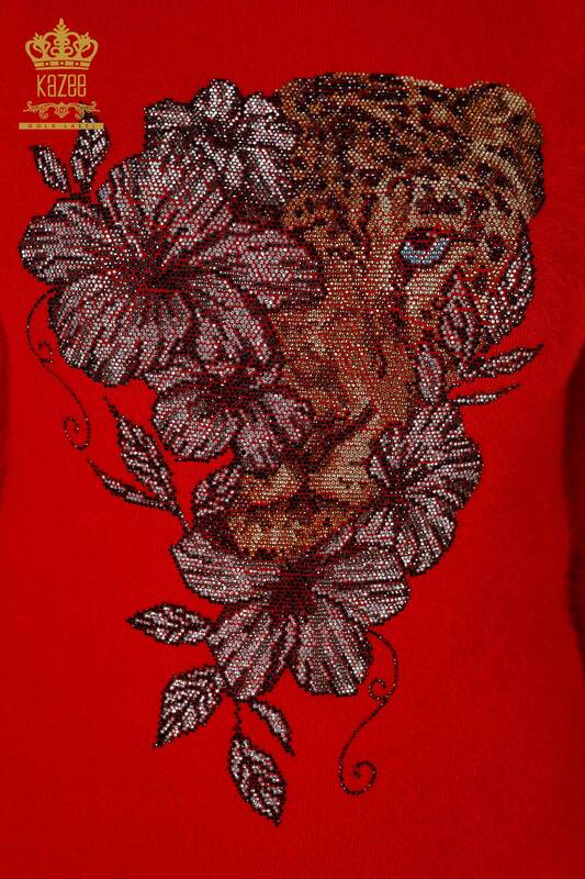 عمده فروشی ژاکت بافتنی زنانه با الگوی گلدوزی شده سنگی موی خرگوش قرمز-16993 / کازی