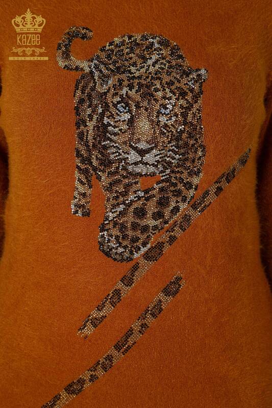 عمده فروشی ژاکت بافتنی زنانه با سنگ دوزی الگوی ببر خردل انگورا - 18957 / کازی