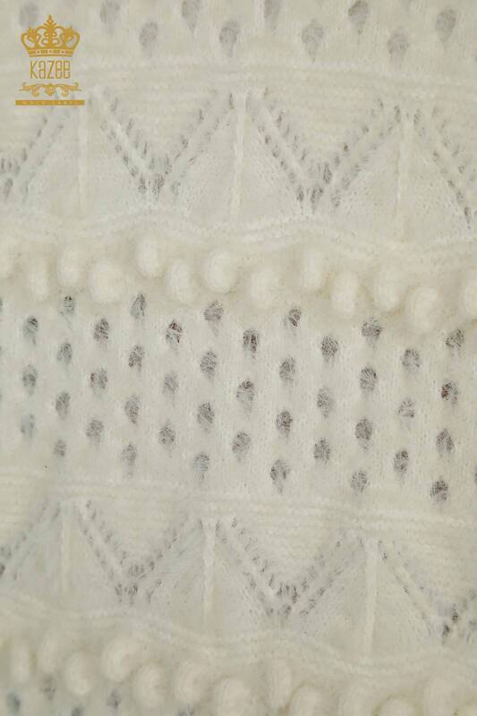 فروش عمده ژاکت بافتنی زنانه آنگورا یقه V-Ecru سوراخ دار - 30697 | KAZEE
