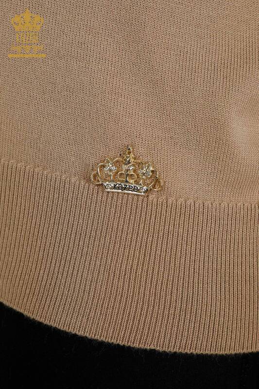 فروش عمده ژاکت بافتنی زنانه لوگوی پایه یقه بژ - 11052 | KAZEE