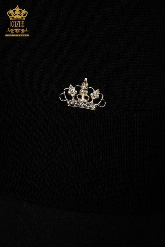 فروش عمده ژاکت بافتنی زنانه لوگوی پایه V یقه مشکی - 30181 | KAZEE