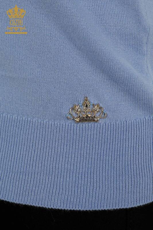 فروش عمده ژاکت بافتنی زنانه لوگوی پایه یقه خدمه آبی - 30213 | KAZEE