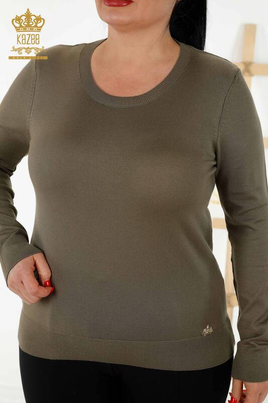 فروش عمده ژاکت بافتنی زنانه لوگوی پایه خدمه یقه خاکی - 30213 | KAZEE