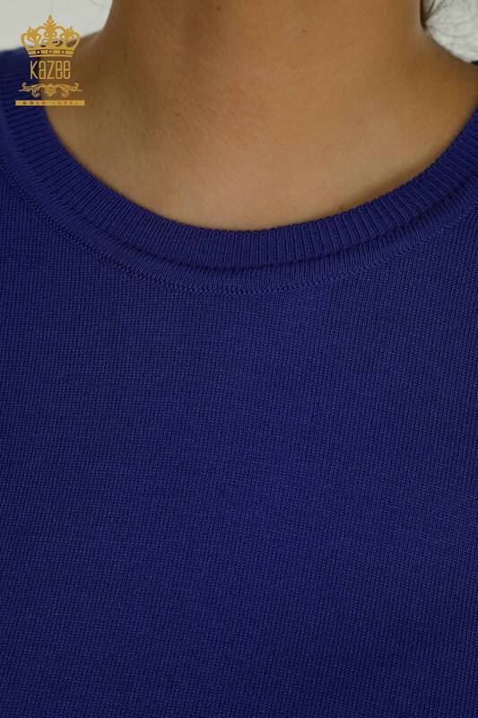 فروش عمده ژاکت بافتنی زنانه لوگوی پایه یقه خدمه بنفش - 11052 | KAZEE