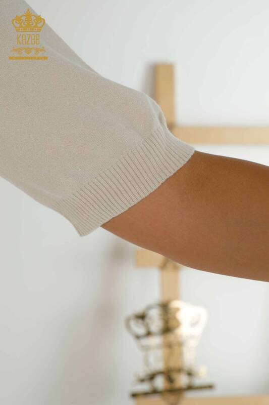 فروش عمده ژاکت بافتنی زنانه پایه آستین کوتاه یقه بژ - 30334 | KAZEE