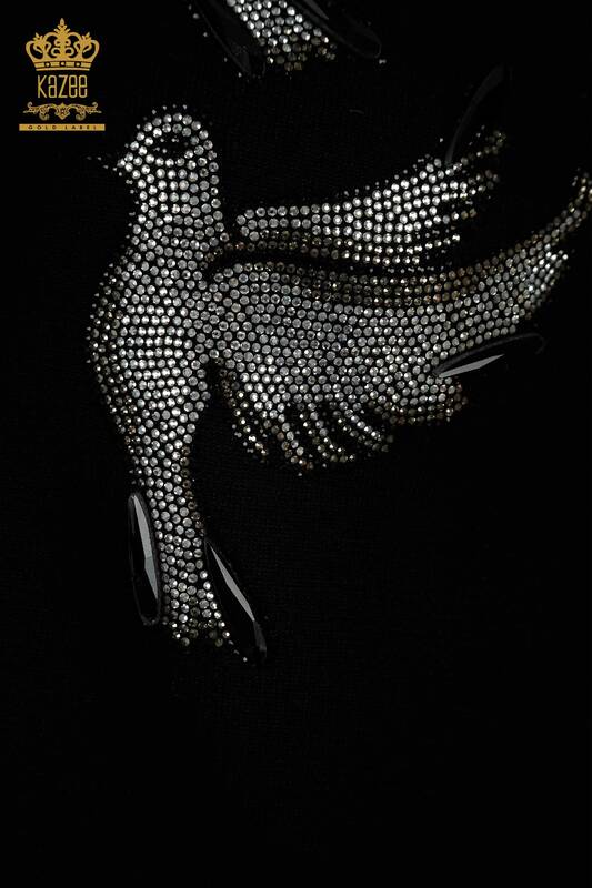 فروش عمده ژاکت بافتنی زنانه ژاکت پرنده سنگ دوزی مشکی - 30745 | KAZEE