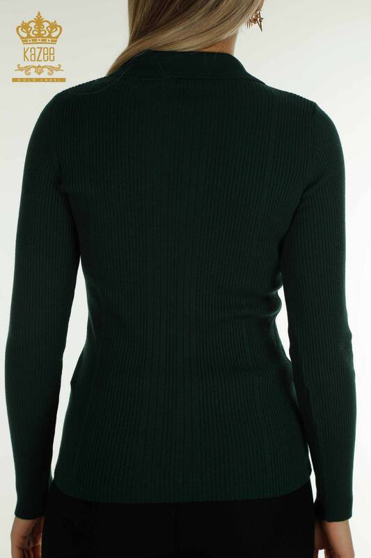 عمده فروشی لباس بافتنی زنانه دکمه ژاکت آستین بلند پایه نفتی - 30364 | KAZEE