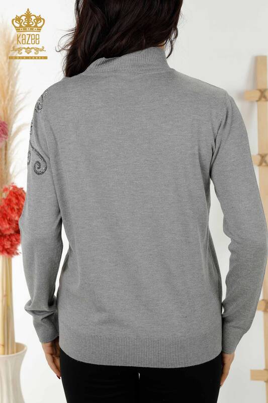 فروش عمده ژاکت بافتنی زنانه با طرح سنگ کریستال خاکستری دوزی - 30013 | KAZEE