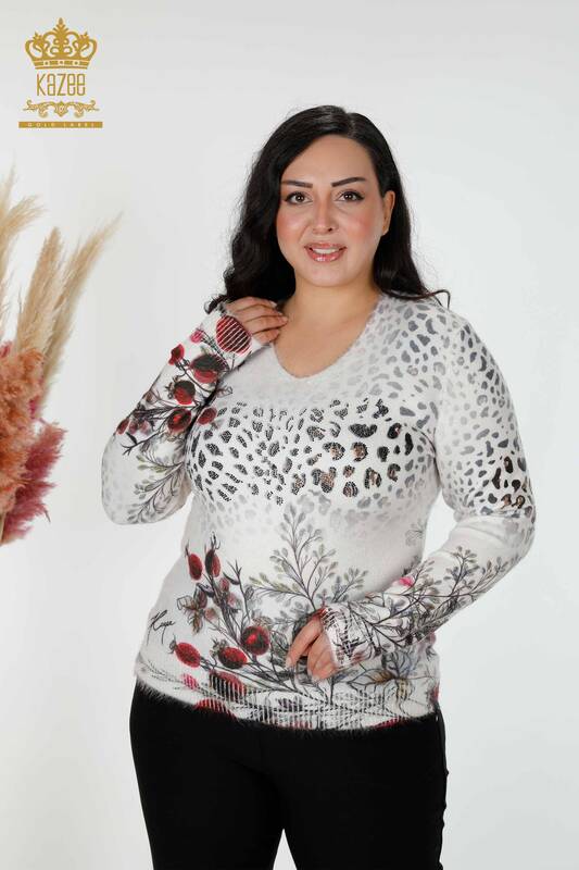 عمده فروشی ژاکت بافتنی زنانه چاپ دیجیتال با الگوی سنگ دوزی اکرو -18978 | کازی