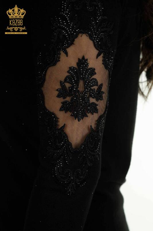 فروش عمده ژاکت بافتنی زنانه سنگ دوزی آستین بلند مشکی - 30892 | KAZEE