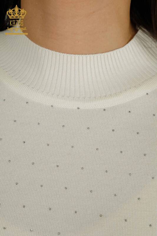 فروش عمده ژاکت بافتنی زنانه با سنگ دوزی اکرو آستین بلند - 30892 | KAZEE