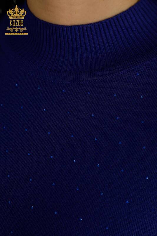 فروش عمده ژاکت بافتنی زنانه ساکس آستین بلند سنگ دوزی - 30892 | KAZEE