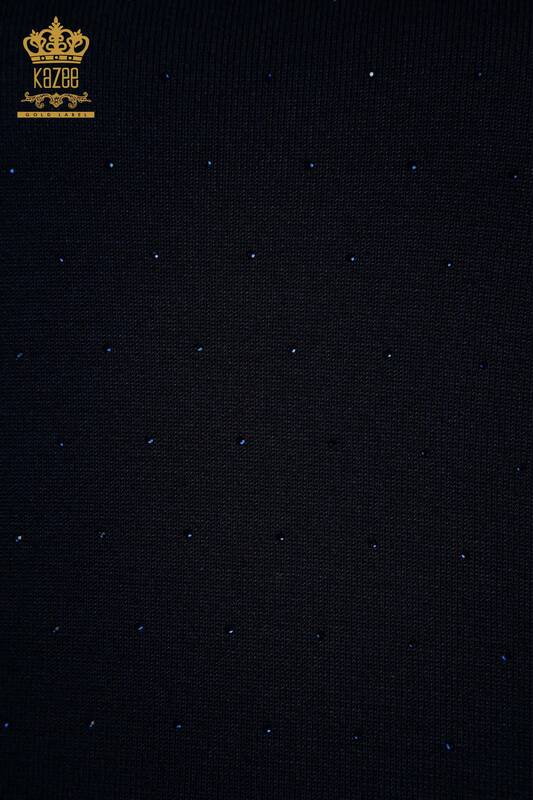 فروش عمده ژاکت بافتنی زنانه با سنگ دوزی آستین بلند سرمه ای - 30892 | KAZEE