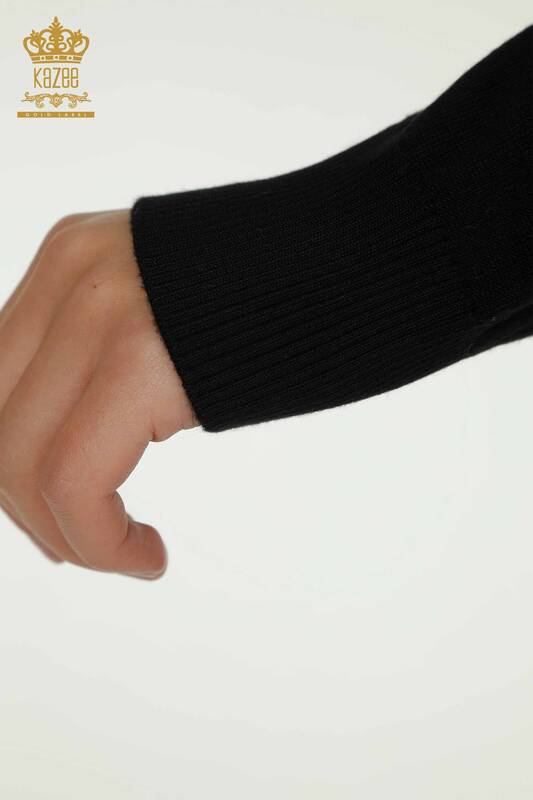 فروش عمده ژاکت بافتنی زنانه یقه سنگ دوزی گلدار یقه مشکی - 30614 | KAZEE