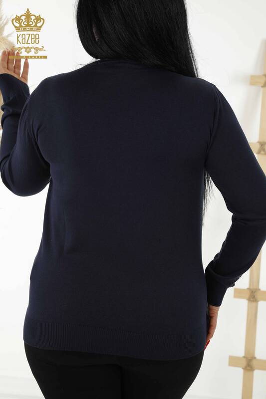 فروش عمده ژاکت بافتنی زنانه طرح گل سنگ دوزی سرمه ای - 30152 | KAZEE