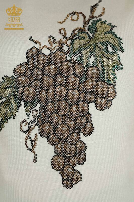 فروش عمده ژاکت بافتنی زنانه اکرو سنگ دوزی شده طرح انگوری - 30488 | KAZEE