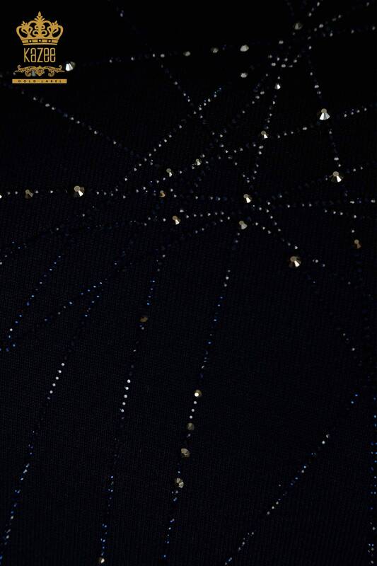فروش عمده ژاکت بافتنی زنانه یقه بلند سنگ دوزی آستین بلند سرمه ای - 30454 | KAZEE