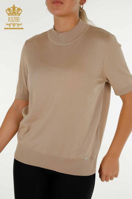 فروش عمده ژاکت بافتنی زنانه مدل آمریکایی یقه استند ویسکوز بژ - 16168 | KAZEE