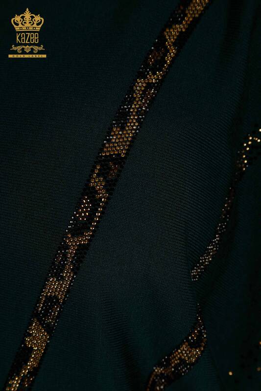 فروش عمده ژاکت بافتنی زنانه سنگ پلنگ آستین خفاشی نفتی - 30633 | KAZEE