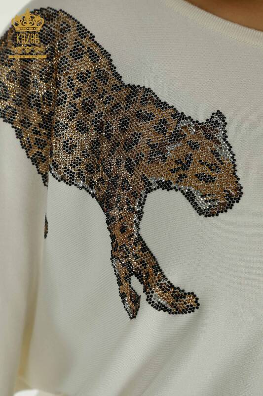 فروش عمده ژاکت بافتنی زنانه اکرو آستین خفاشی با سنگ پلنگ دوزی - 30633 | KAZEE