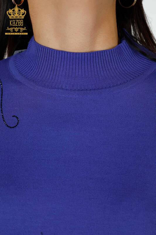 عمده فروشی ژاکت بافتنی زنانه شانه گلدار دقیق سنگ دوزی بنفش-16597 / کازی