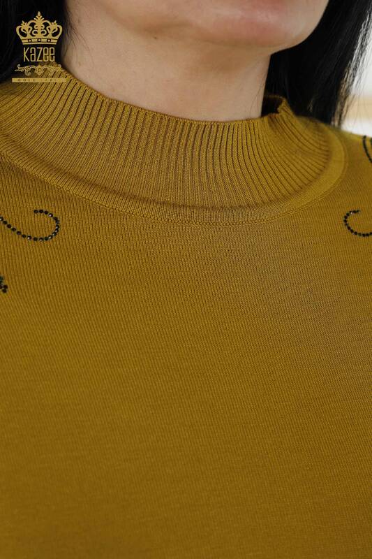 فروش عمده ژاکت بافتنی زنانه ژاکت زعفران دوزی شده با سنگ گلدار - 30007 | KAZEE