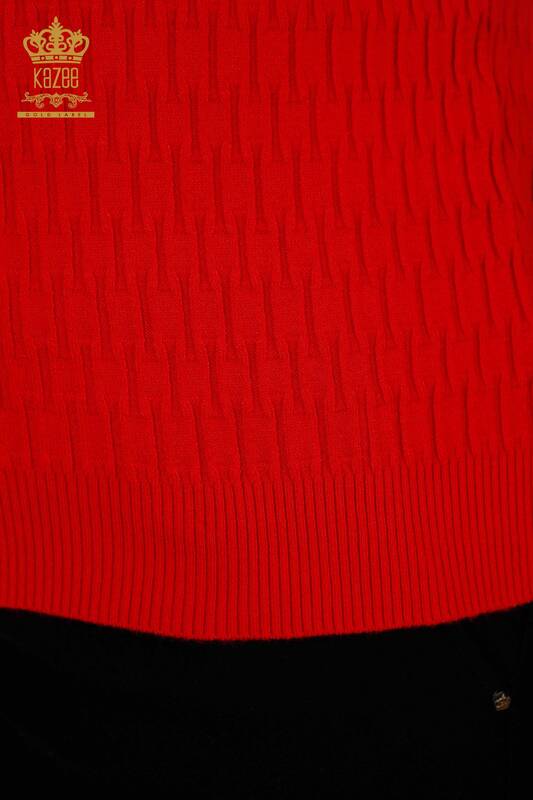 فروش عمده ژاکت بافتنی زنانه استند یقه خود بافت قرمز - 30338 | KAZEE