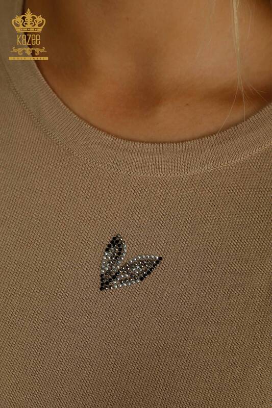 فروش عمده ژاکت بافتنی زنانه سنگ دوزی شده طرح گل بژ - 30471 |