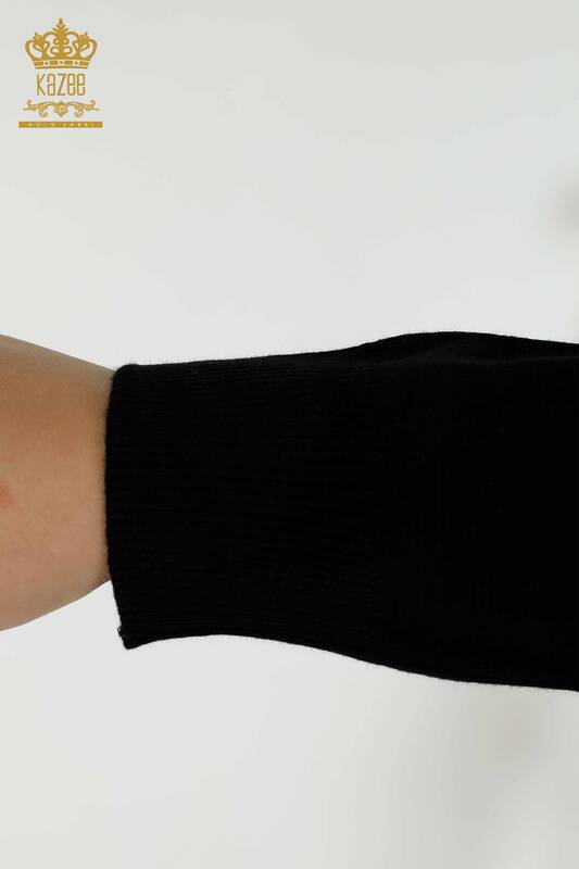 فروش عمده ژاکت بافتنی زنانه سنگ دوزی آستین بلند مشکی - 16728 | KAZEE