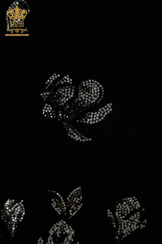 فروش عمده ژاکت بافتنی زنانه سنگ دوزی طرح گل مشکی - 30471 | KAZEE