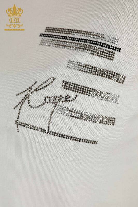 فروش عمده ژاکت بافتنی زنانه اکرو آستین کوتاه دوزی شده - 30491 | KAZEE