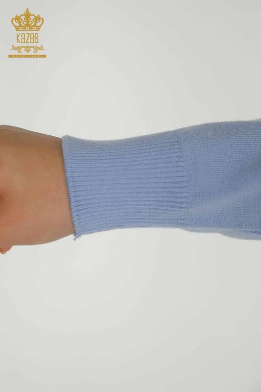 فروش عمده ژاکت بافتنی زنانه ژاکت طرح ببری سنگ دوزی آبی - 30127 | KAZEE