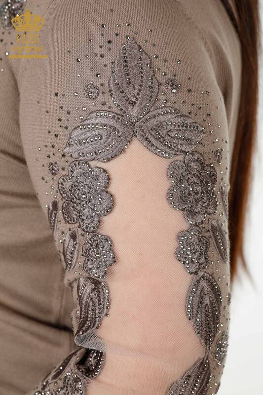 عمده فروشی ژاکت بافتنی زنانه آستین تول سنگ دوزی Mink - 30123 | KAZEE