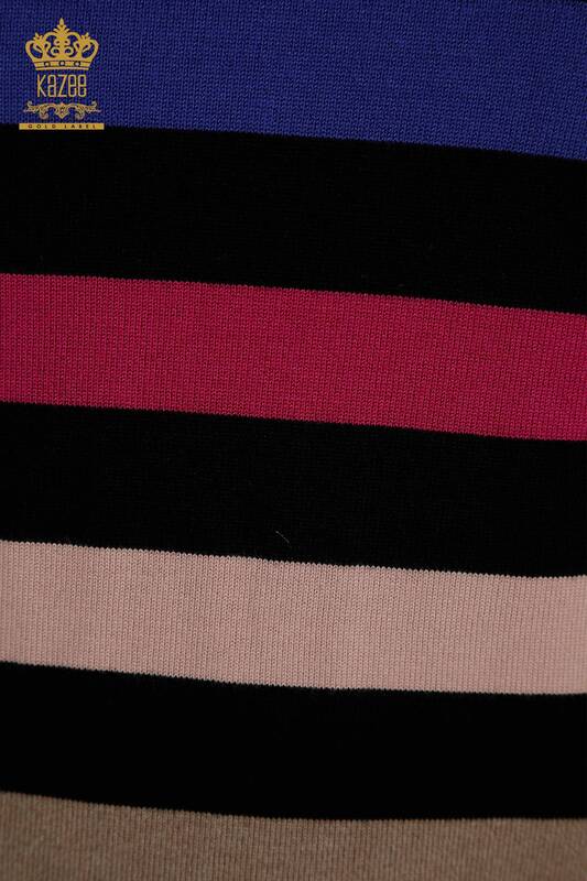 فروش عمده ژاکت بافتنی زنانه راه راه دو رنگ مشکی فوشیا - 30786 | KAZEE