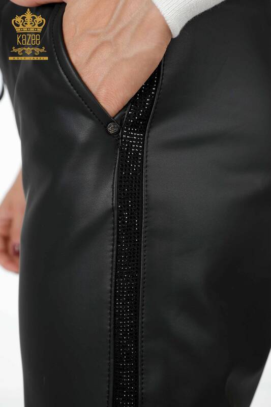 فروش عمده شلوار چرم زنانه بند دوزی سنگ کریستال - 3645 | KAZEE