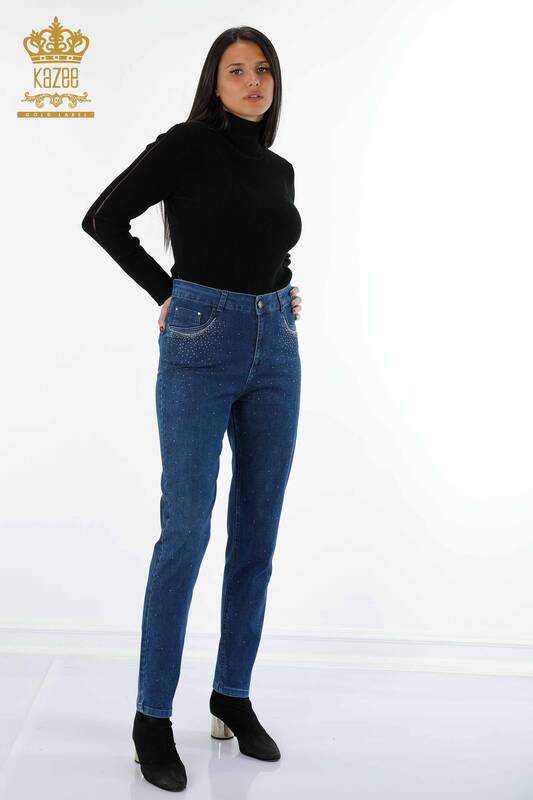 فروش عمده شلوار جین زنانه رنگی سنگ کریستال پنبه دوزی - 3588 | KAZEE